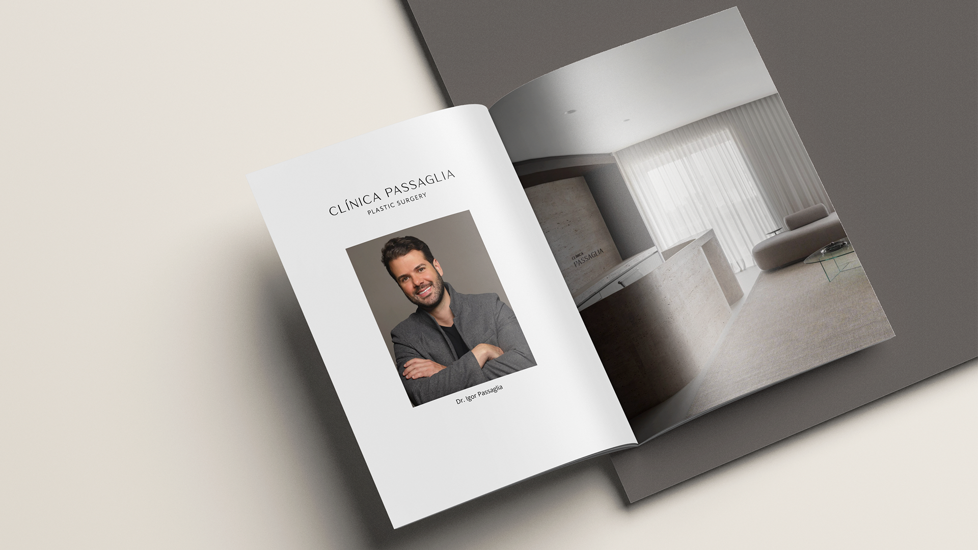 A identidade visual da Clínica Passaglia, foi criada para traduzir visualmente os valores de excelência, sofisticação e precisão que marcam a trajetória do cirurgião plástico Dr. Igor Passaglia.